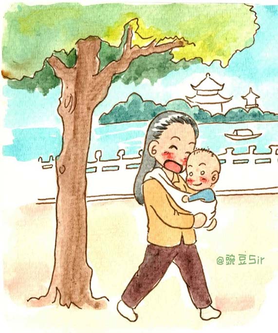 用小手绢抱住冰棒棍放在果宝儿嘴里,