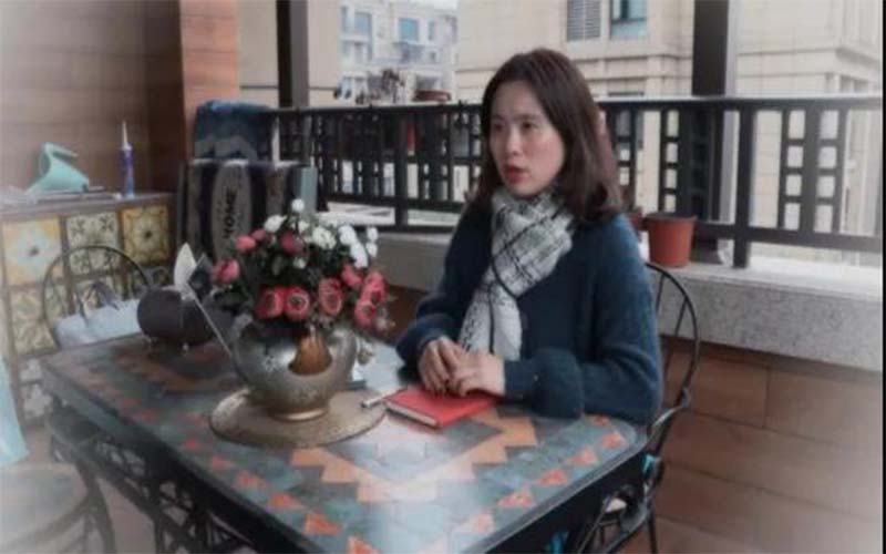 接受采访时她和记者面对面坐在阳台的小桌边,穿着深蓝色针织衫,围着黑白条纹的围巾,及肩发的末端微卷,脸上的淡妆衬托出她的好气色。