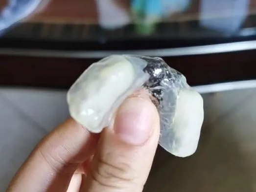 “咬嘴唇是最难控制的。柒柒小的时候,外婆给他缝制了专门含在口中的纱布条,后来长大一些,我们给他做了牙套,但是牙套效果有限,还是会咬伤。万不得已,我们只好把他的四颗门牙拔掉了,等他慢慢长大,乳牙掉了长出恒牙,咬得就更严重了。整个下嘴唇都溃烂了,再后来下嘴唇慢慢就没有了,变成了一个中间凸起的小肉球。”