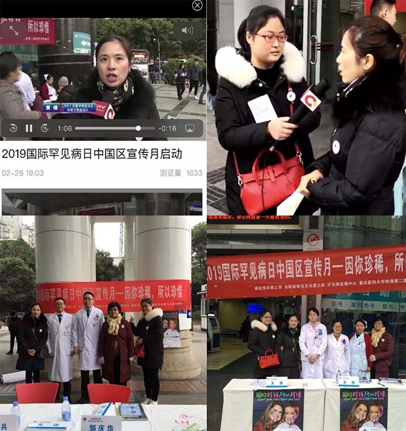 2019.2月:@ “2.28国际罕见病日”在“重庆西南医院”和“重医附二院”进行科普和宣传,重庆市渝中区电视台对LNS进行采访并播出;