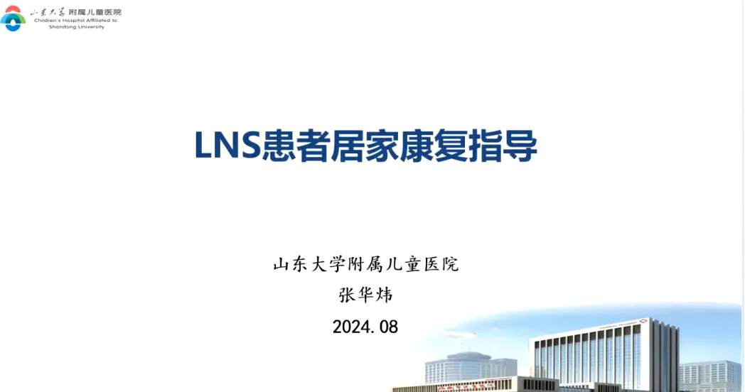 因为LNS疾病康复疗效有限,患群中固定去专业康复机构训练L患者不多,大部分处于居家护理的状态,因此,家长们渴望了解如何在家进行康复训练指导。我们邀请到了来自山东大学附属儿童医院康复科张华炜医生(中国LNS诊疗与科研联盟成员之一)帮助家长们进行《LNS患者居家康复指导》讲座。张老师对疾病做了详细描述,并解析了患者的各种功能障碍,并针对不同障碍分别提出了居家康复的策略。张老师提到:正是由于各种障碍,LNS患者的居家康复管理尤为重要;家长需要重视进食、姿势、自伤和认知语言等等多方面的干预和管理;并且帮助孩子创造机会参与社会活动,提升生活中质量。