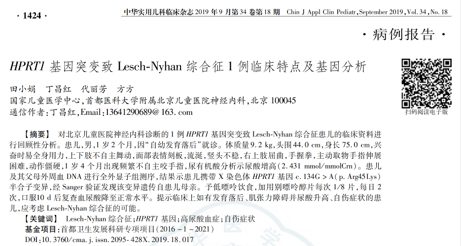 于是,柒柒迅速在院内完成了基因检测;而相关酶学检测技术彼时尚未引进国内,丁昌红教授团队联系上既往进行过学术交流的日本名古屋市立大学药学研究科,对方表示可以免费为柒柒及其父母进行外周血 HGPRT 酶活性测定。