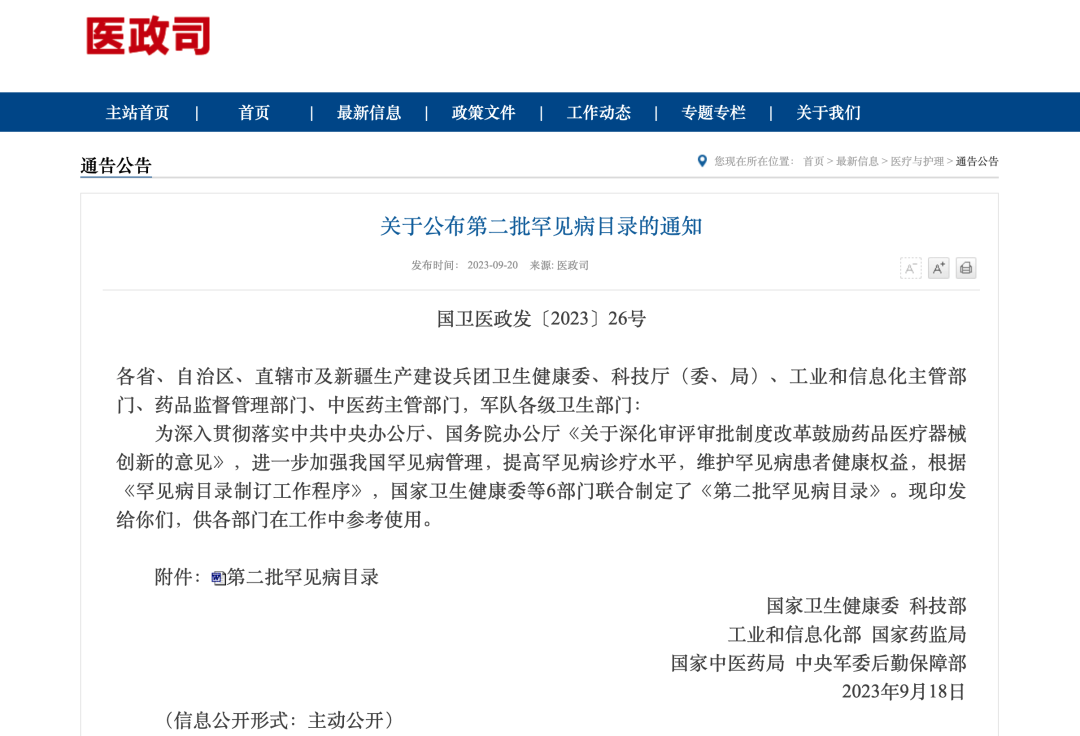 《第二批罕见病目录》公布,收录86种罕见疾病