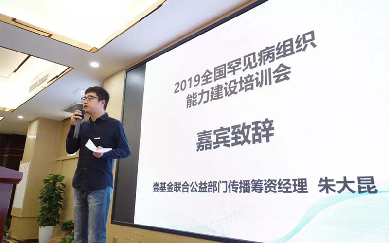 B会场由大爱清尘政策研究中心主任窦璐、壹基金联合公益部门传播筹资经理朱大昆分别讲解罕见病组织政策倡导及如何做好社群筹款。