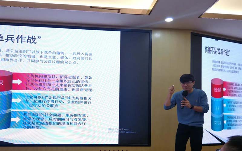 17日上午,全体参会者简要回顾了第一天所学内容后便开启第二天的学习。会议仍分为A、B两会场同时进行。A会场从媒体传播及讲好故事两个角度进行演讲探讨。B会场主题为公益项目设计和管理。