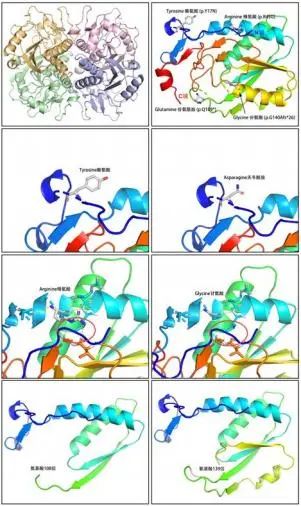 b HGPRT单体存在 β-α- β 结构,蛋白 N端、C端与突变位点已标出(对照);