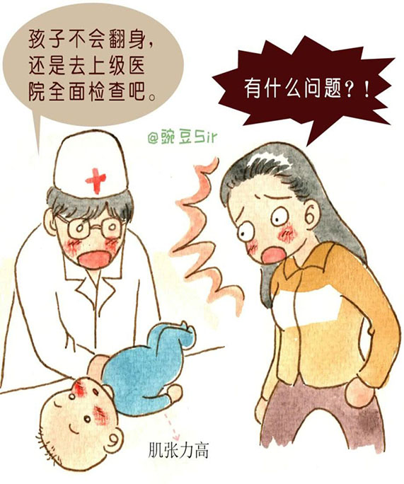 医生发现果宝儿不会翻身,怀疑是脑瘫。