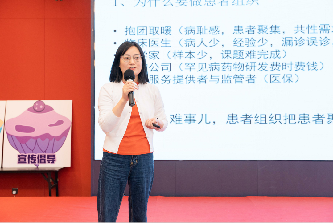 赵玲用简单一句话说出了患者组织是如何成立的——“找到与你坚定同行的人,有了坚定的信念,就去做吧!”。患者组织从自救,到抱团取暖,再到表达诉求,患者组织的成立都要经历哪些过程?抱团取暖是患者们的实际需要,由于临床医生对罕见病的经验不足,罕见病领域的研究者少,患者也需要聚合起来分享治疗经验,找寻新的治疗方式,同时共同推动药物公司研发与健康服务提供者加速罕见病药物的落地。那么建立机构需要准备什么?首先需要分析现况和可能遇到的问题,找到愿意同行的人组织团队;在充分了解团队成员的情况下,在大家在擅长的领域发挥优势;做好中台搭建,凝聚所有可以获得的力量。“莫听穿林打叶声,何妨吟啸且徐行”最后她用一句诗,鼓励了在座所有人,不惧困难,从容前行!