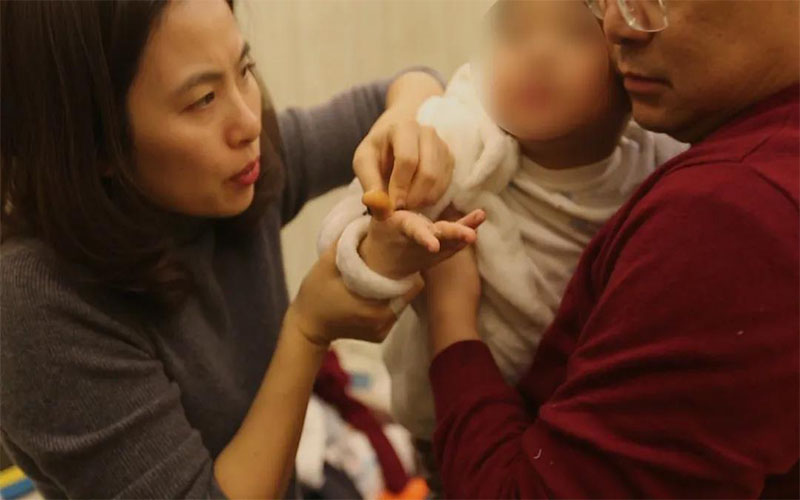 爸爸妈妈会特别关注柒柒的各项身体指标,所以会定期带柒柒去医院做检查。每次抽完血,柒柒妈妈都会小心翼翼地拿着采血管,交给医生化验。因为医院人流量大,柒柒的情绪也会受到影响,孩子挣扎发出的哭声与周围的嘈杂声迅速融为一体。